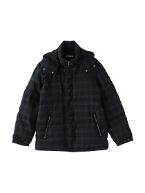 レイヤードコートにニットブルゾンとデニムシャツ。