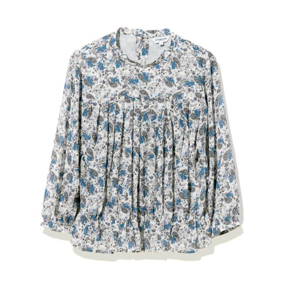 淡いブルーカラーのシャツを合わせて爽やかな印象。
