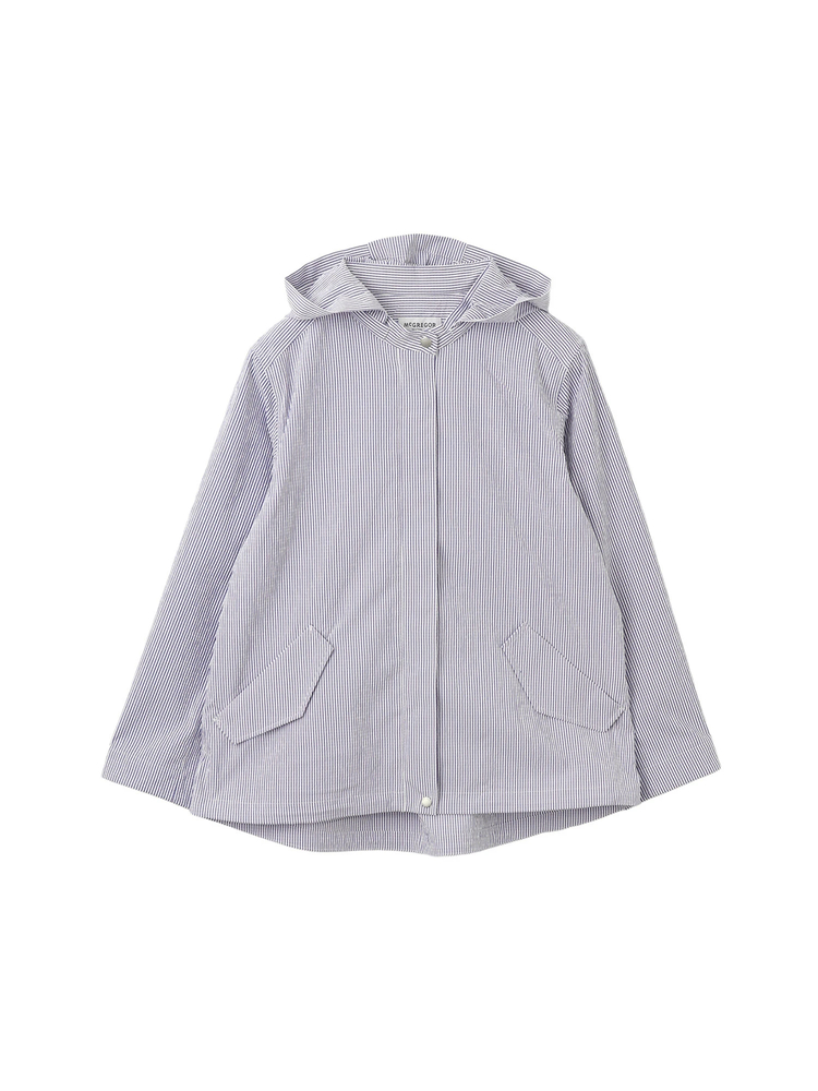 襟や前立ての編み立てリブがスポーティなアクセント。