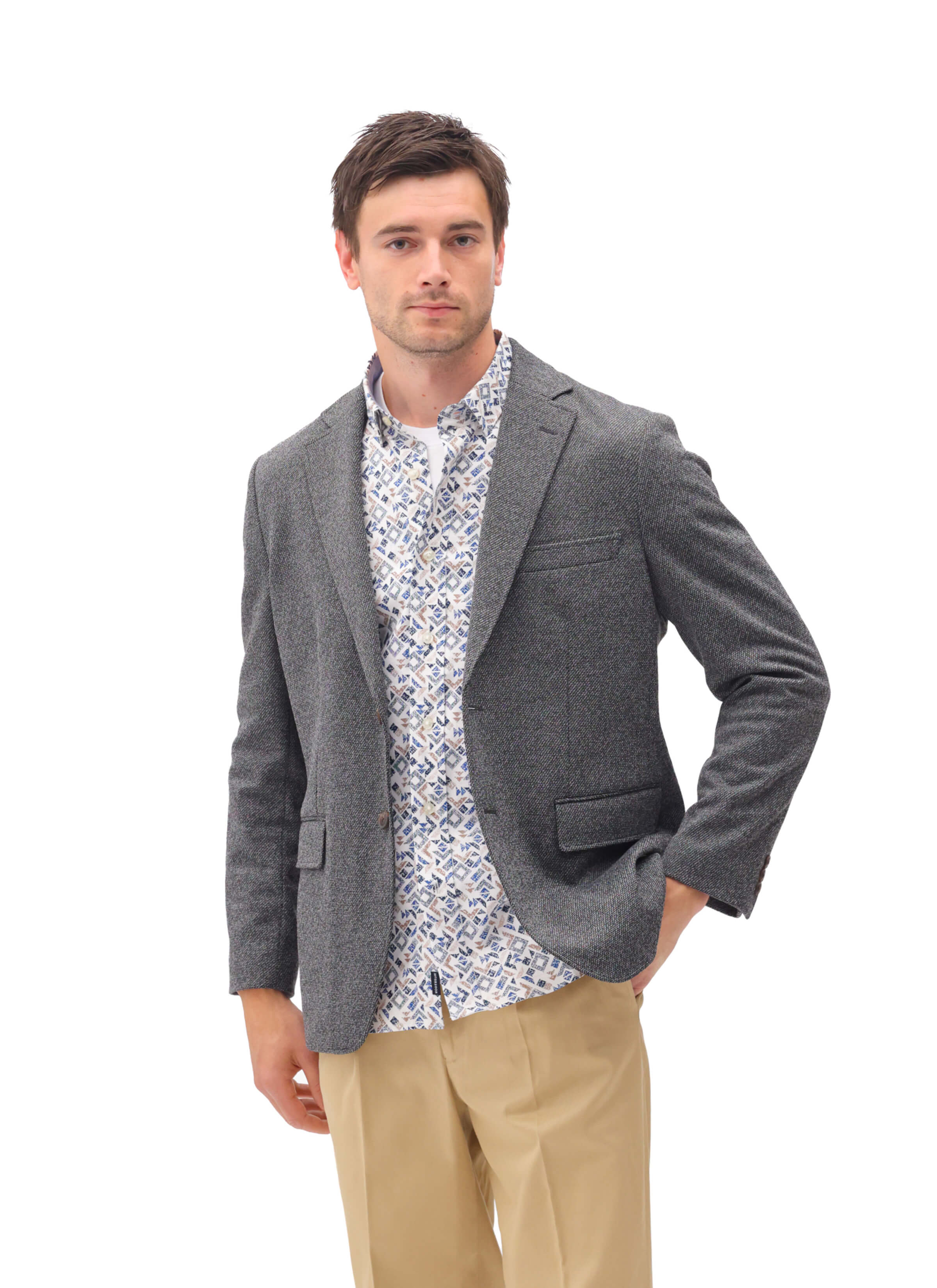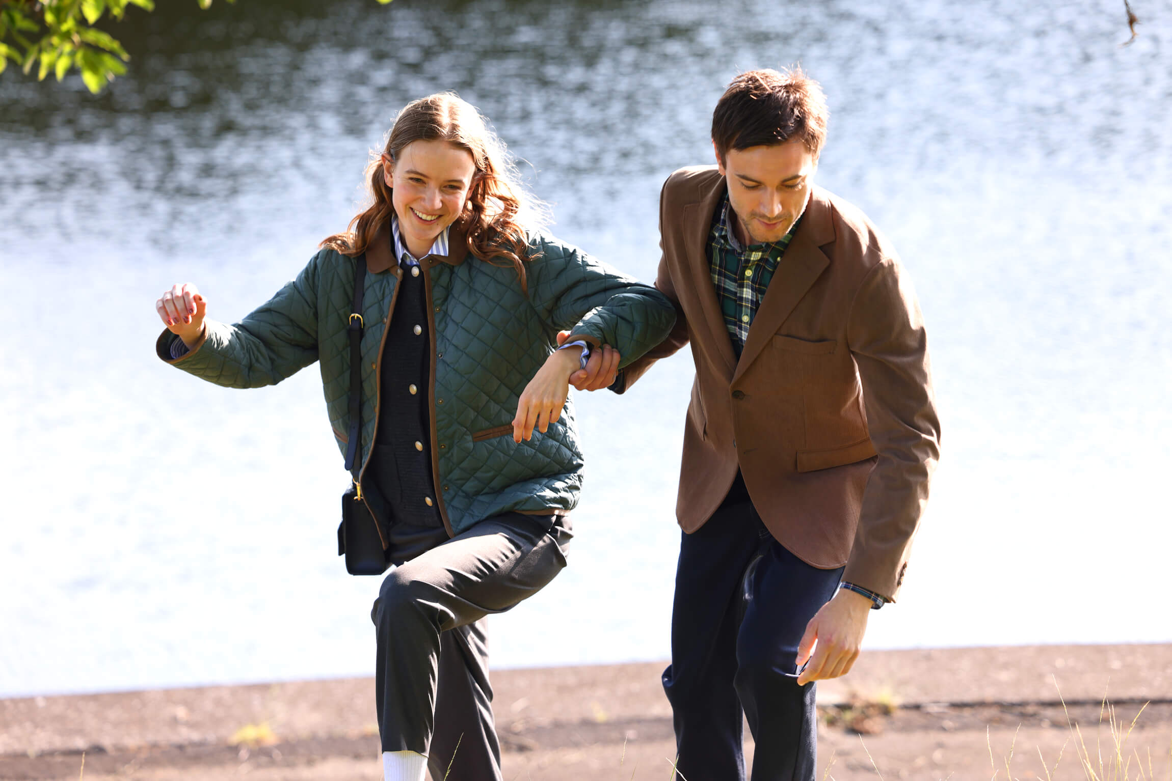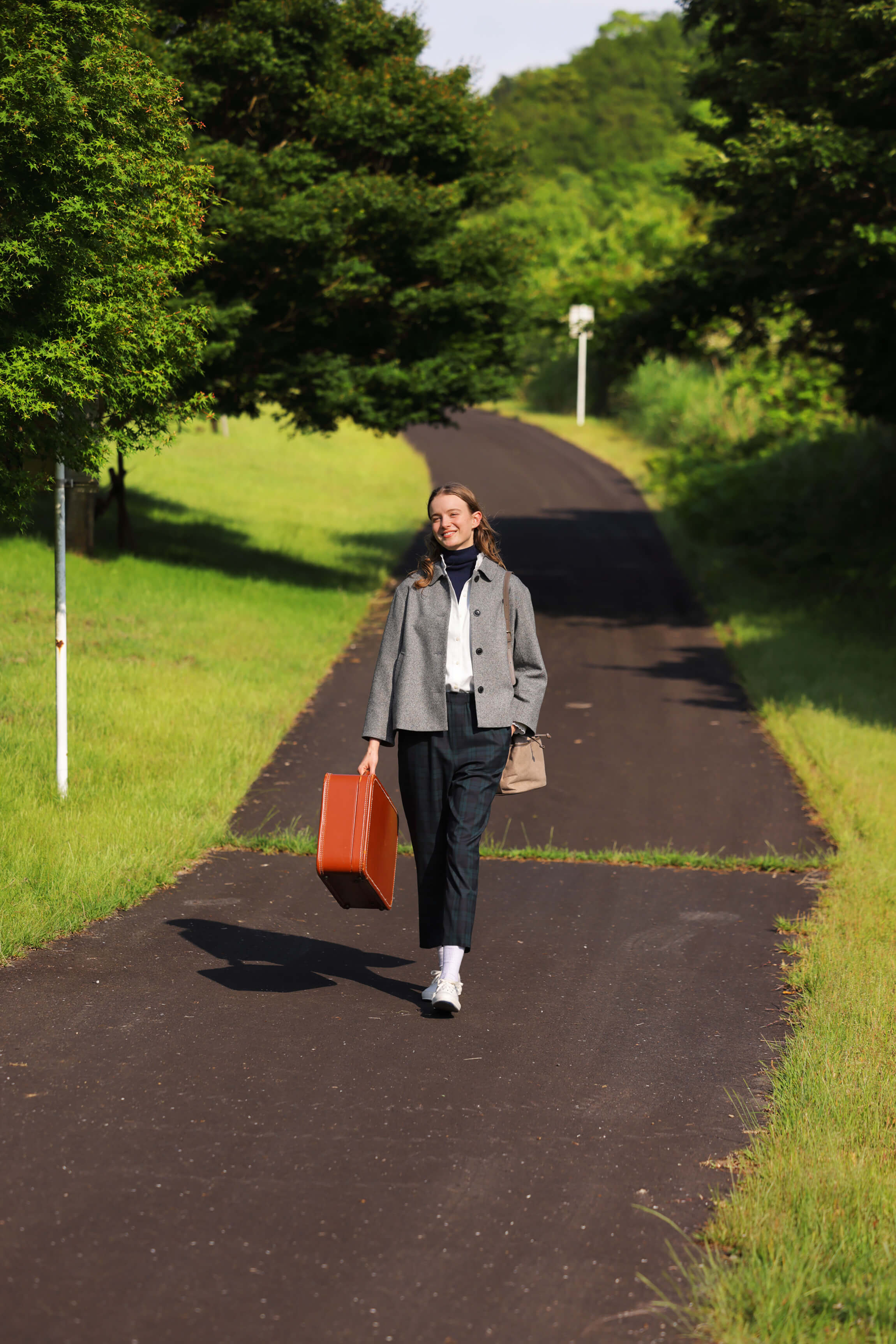 英国調アウトドアカントリージャケットをイメージしたアウターは、ウールと綿をブレンドしたソフトな手触り。伝統的な千鳥格子をこなれたネップと秋色カントリー配色で着こなしやすい柄にアップデート。