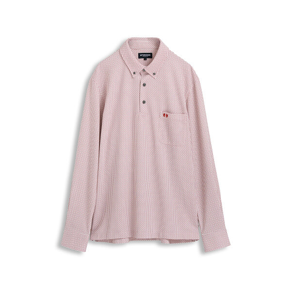 ジャージ素材に小柄メダリオンをプリントしたポロシャツ。伸縮性があり、プルオーバーでも着脱しやすいところがポイント。肌触りの良いソフトなコットンモダールを使用したスムース素材で快適な着心地。