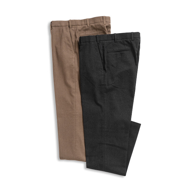 着用感が快適なリラクシングウェスト仕様のきれい目なスラックスシルエットのノータックパンツ。ソフトで優しい風合いと保温機能を持つストレッチ素材を使用し、今季は英国ムードのあるグレンチェックも展開。