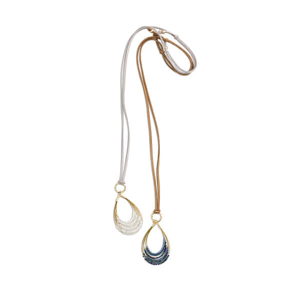 レザー調の紐がアクティブさを演出する大人カジュアルなネックレスです。ビーズカラーのグラデーションが繊細さをプラスします。紐の長さは調節可能で、使いやすいアイテムです。カジュアルスタイルをクラスアップしてくれる華やかなネックレスです。