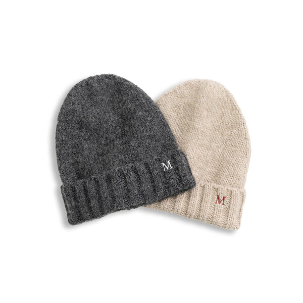 柔らかで優しい色合いのシンプルなニット帽です。配色の“M”刺繍がさりげないアクセントです。もちもちとしたとても触り心地の良い素材です。手洗い可能なのも嬉しいポイントです。どんなコーディネートにもなじむシンプルなカラーとデザインです。