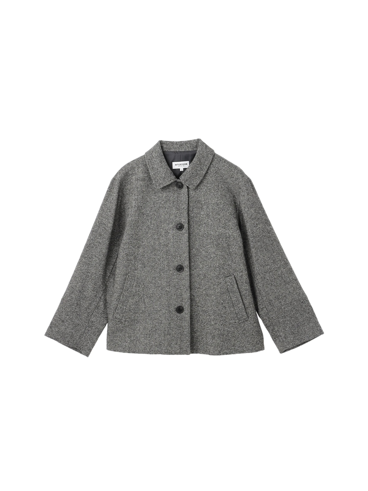 英国調アウトドアカントリージャケットをイメージしたアウターは、ウールと綿をブレンドしたソフトな手触り。伝統的な千鳥格子をこなれたネップと秋色カントリー配色で着こなしやすい柄にアップデート。