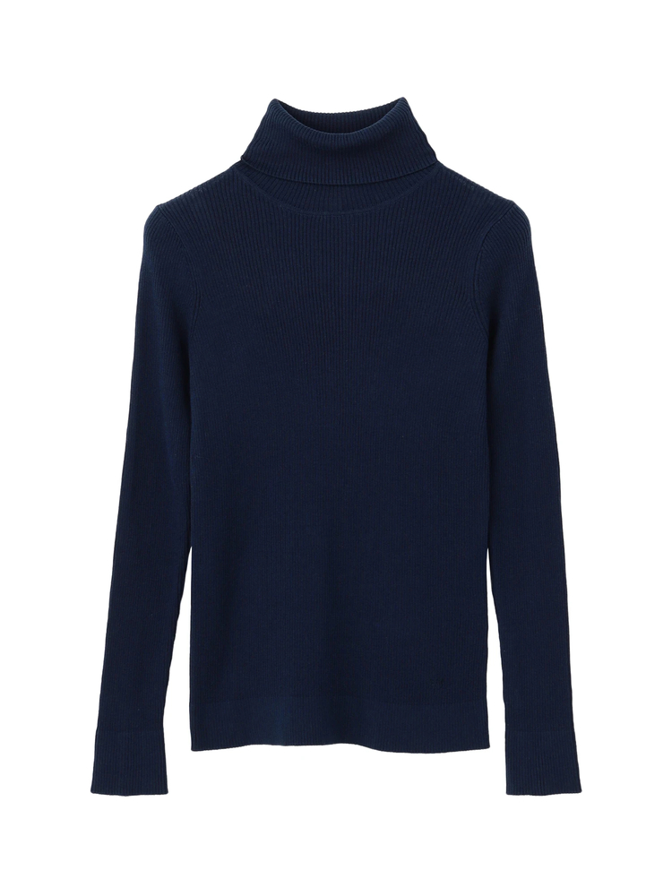 ふくらみ感のあるコットン100%のニットはふんわり暖かい 着心地が特徴。サイドと袖のケーブル編みがスタイルアップを叶えてくれる。