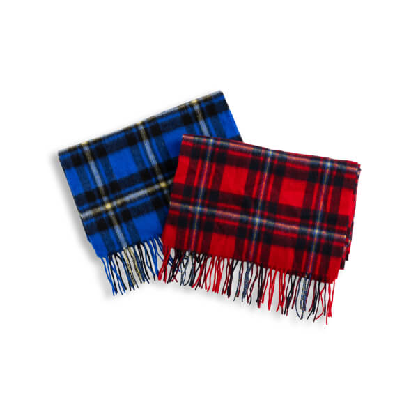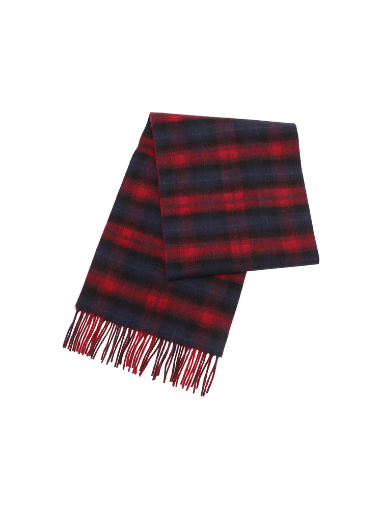 鮮やかなブルーとレッドが目を惹くマックレガー チェックストール。暖かみのあるウール100%素 材。暗くなりがちな冬のスタイルに取り入れるだ けでコーディネートが華やかに。