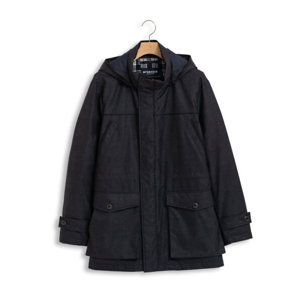 メランジ調の素材で都会的なダウンコート。撥水・防風・透湿性に優れた機能素材「McG TECHNO」を使用。異素材使いやパイピングが見た目のアクセント。冬の都会で過ごす大人の着こなしを楽しみたい。
