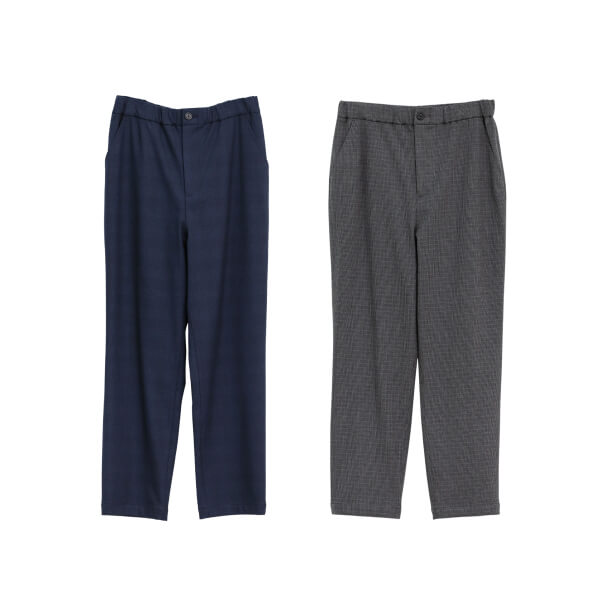 保温効果のある「ソフトサーモ」素材の冬パンツ。ウエスト全体にゴムを施し、履きやすさとすっきり感を兼ね備えたテーパードシルエット。トラッドムードなチェックの2色展開で、スマートな印象に仕上げたアイテム。
