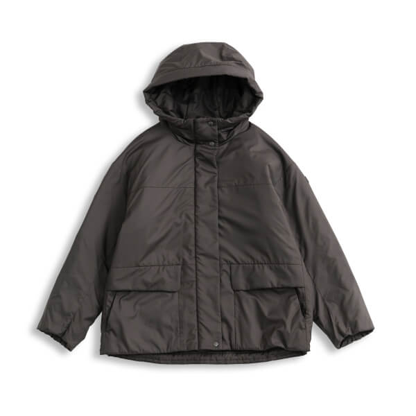機能中わたを使用したフーデッドブルゾン。