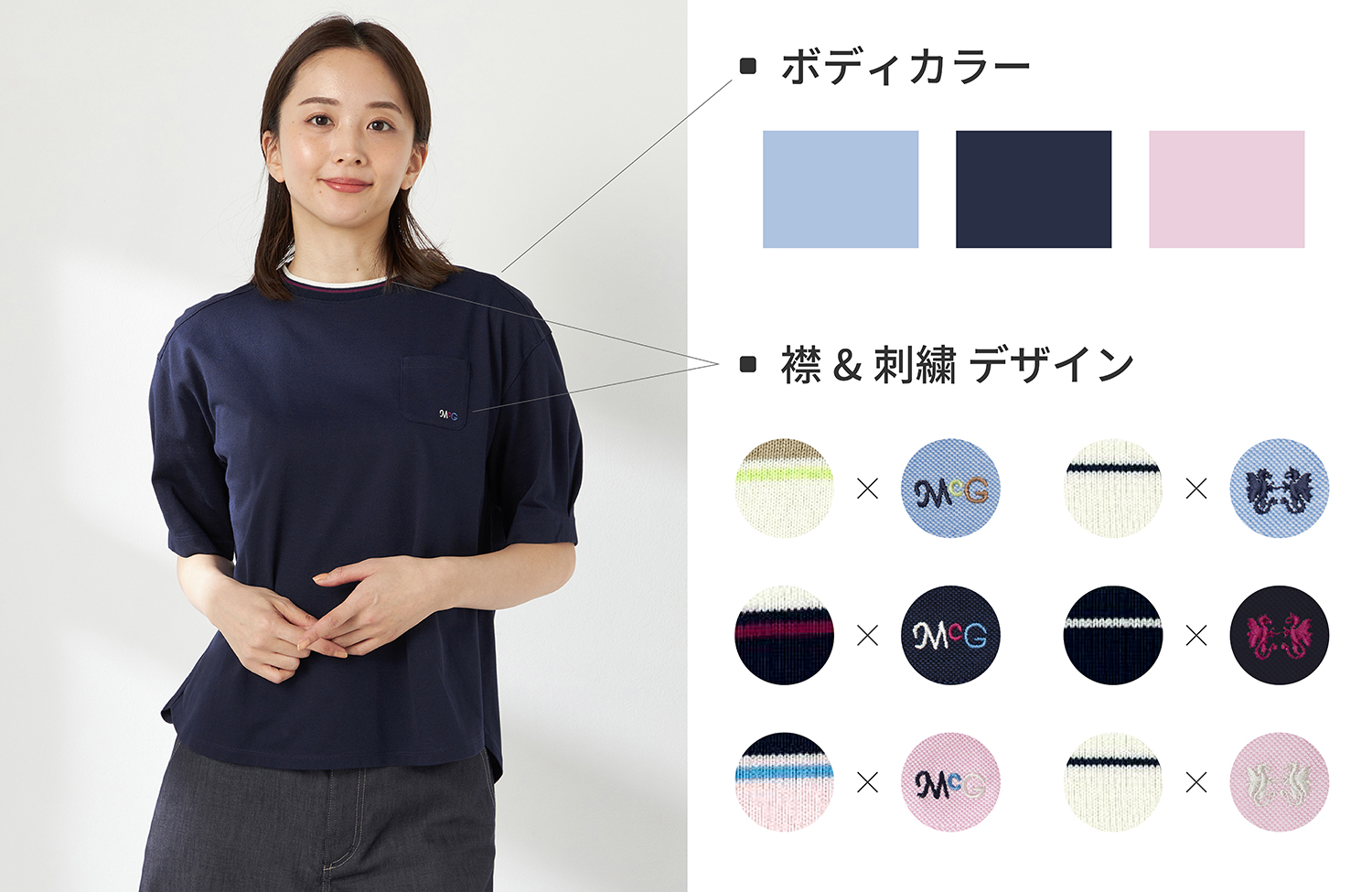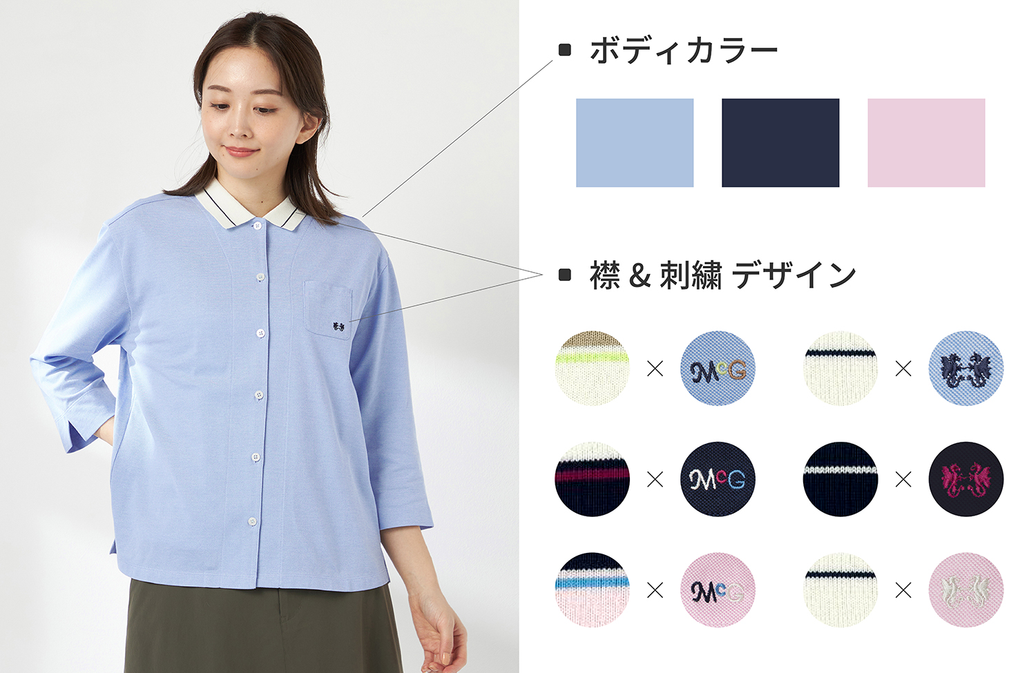 ボディカラーや襟のデザイン、刺繍などを組み合わせて、