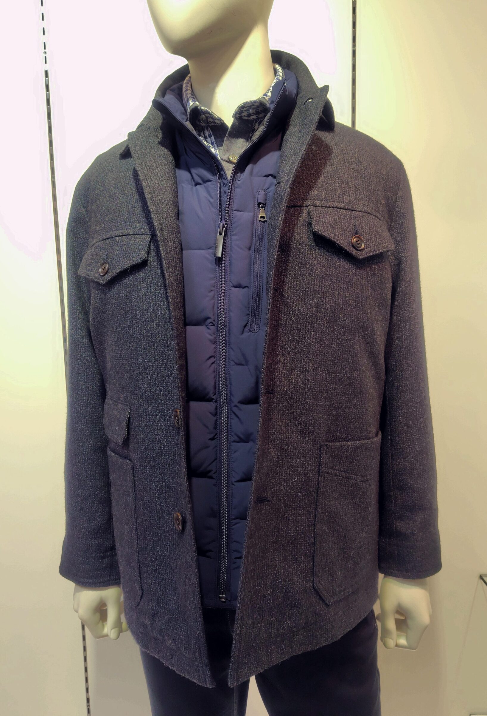 意外とこんなウール調のアウターとも相性よく、インナーダウンとしてもお使いいただけます。