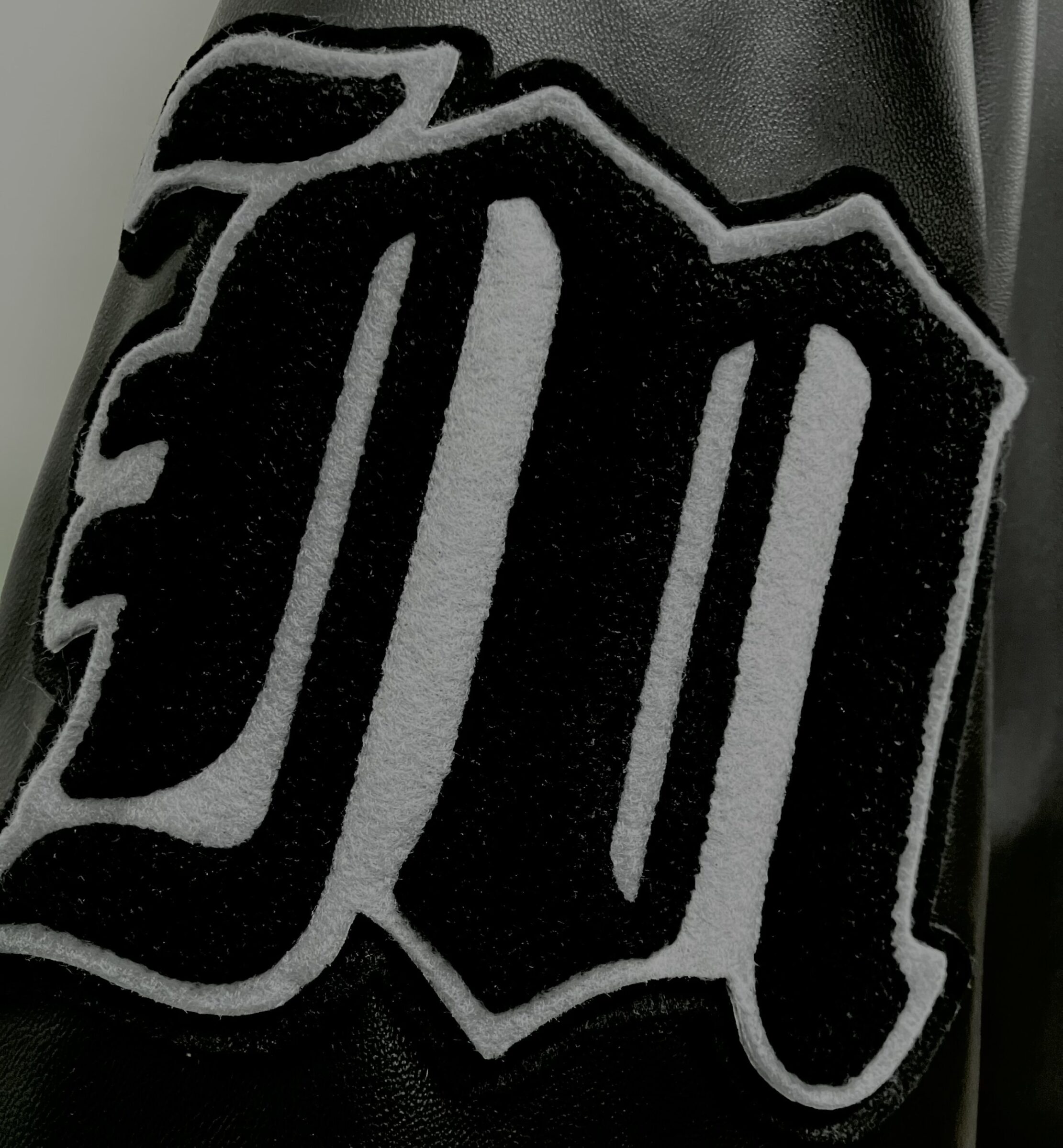黒のラムレザーに、グレートーンに揃えたモチーフがシックなアメカジスタイル。