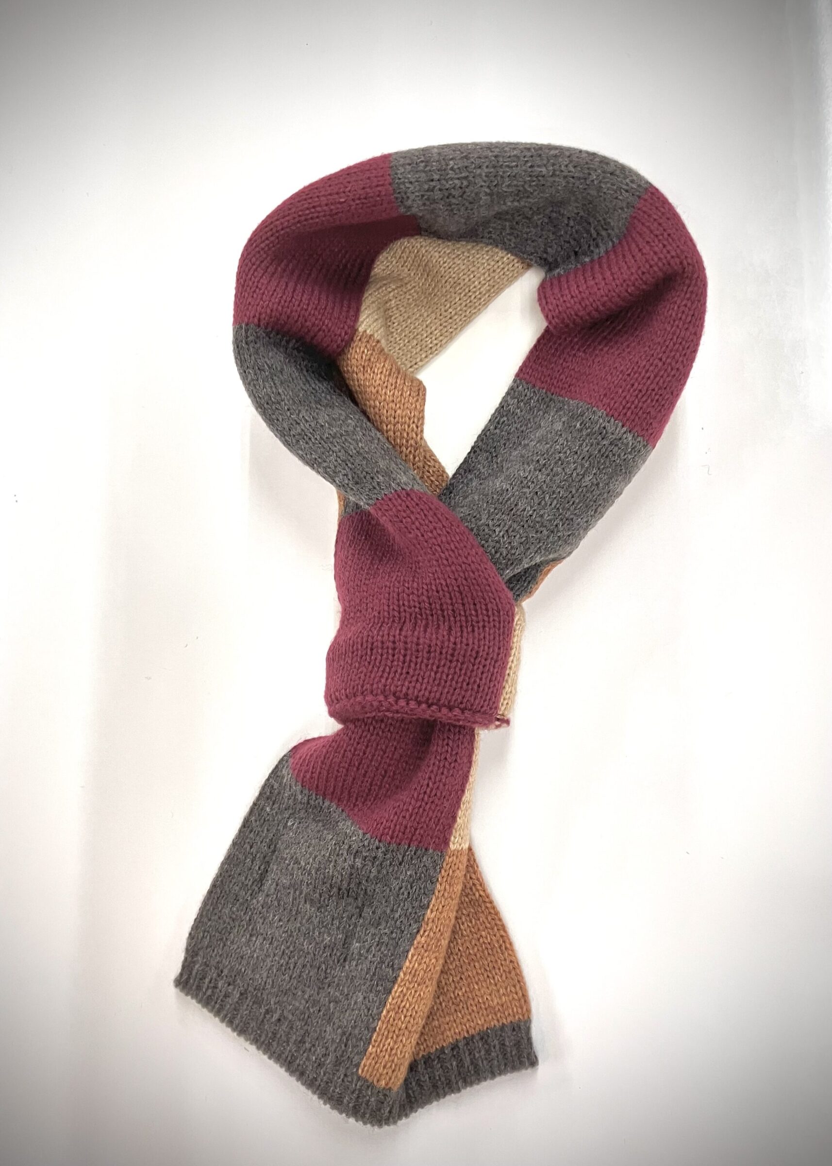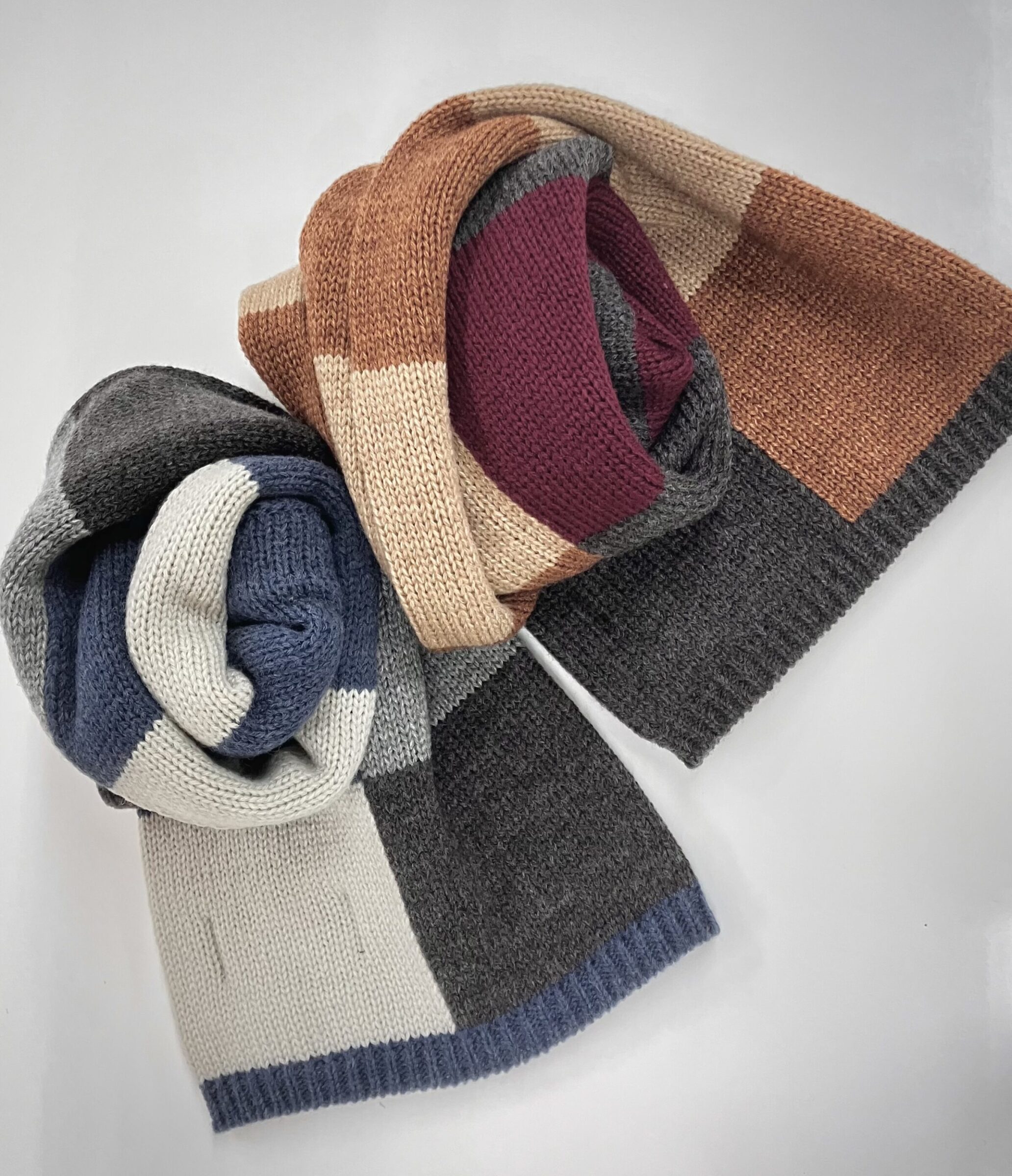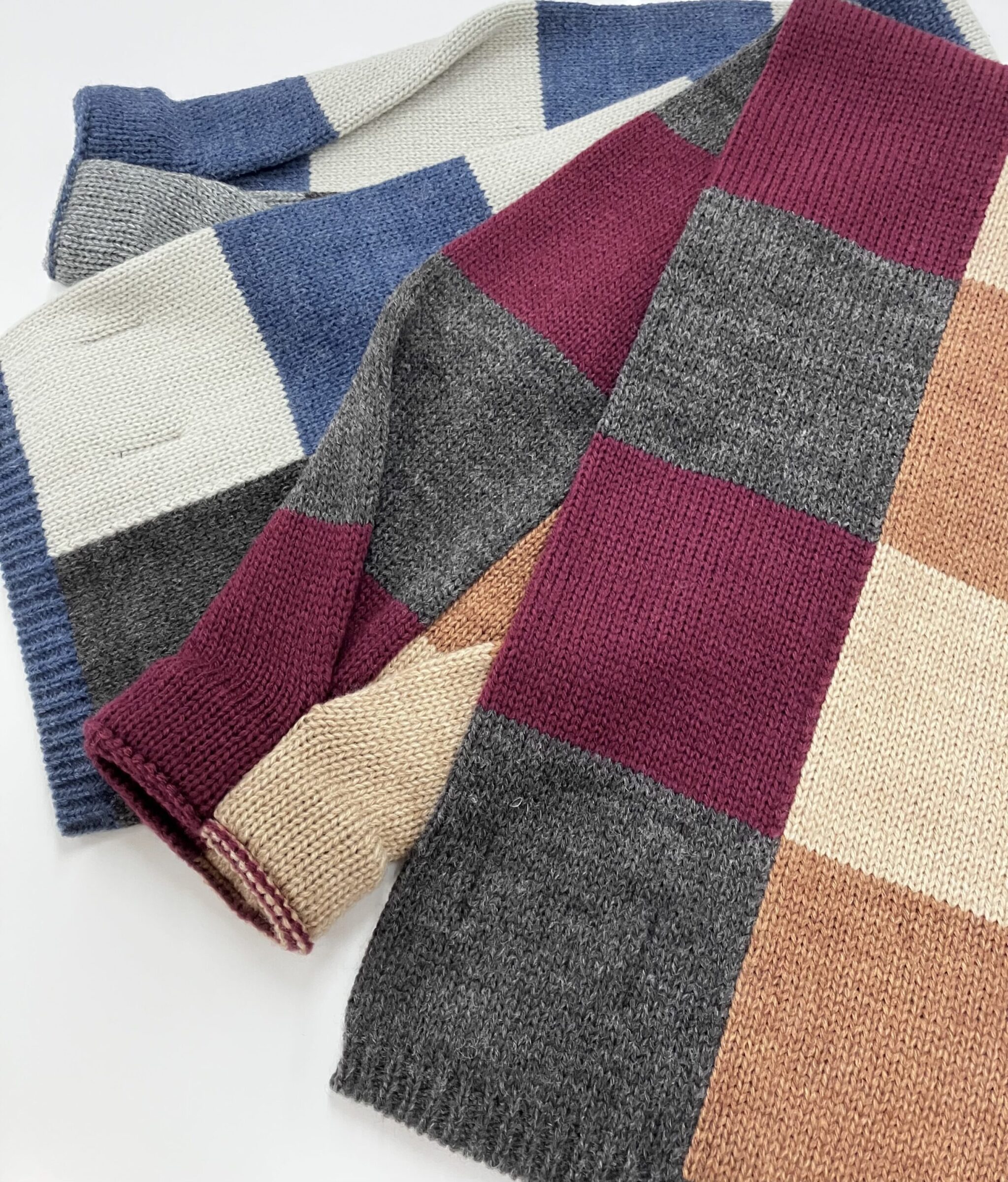 大人の雰囲気を感じる、落ち着いた色合いのブロッキングマフラー。