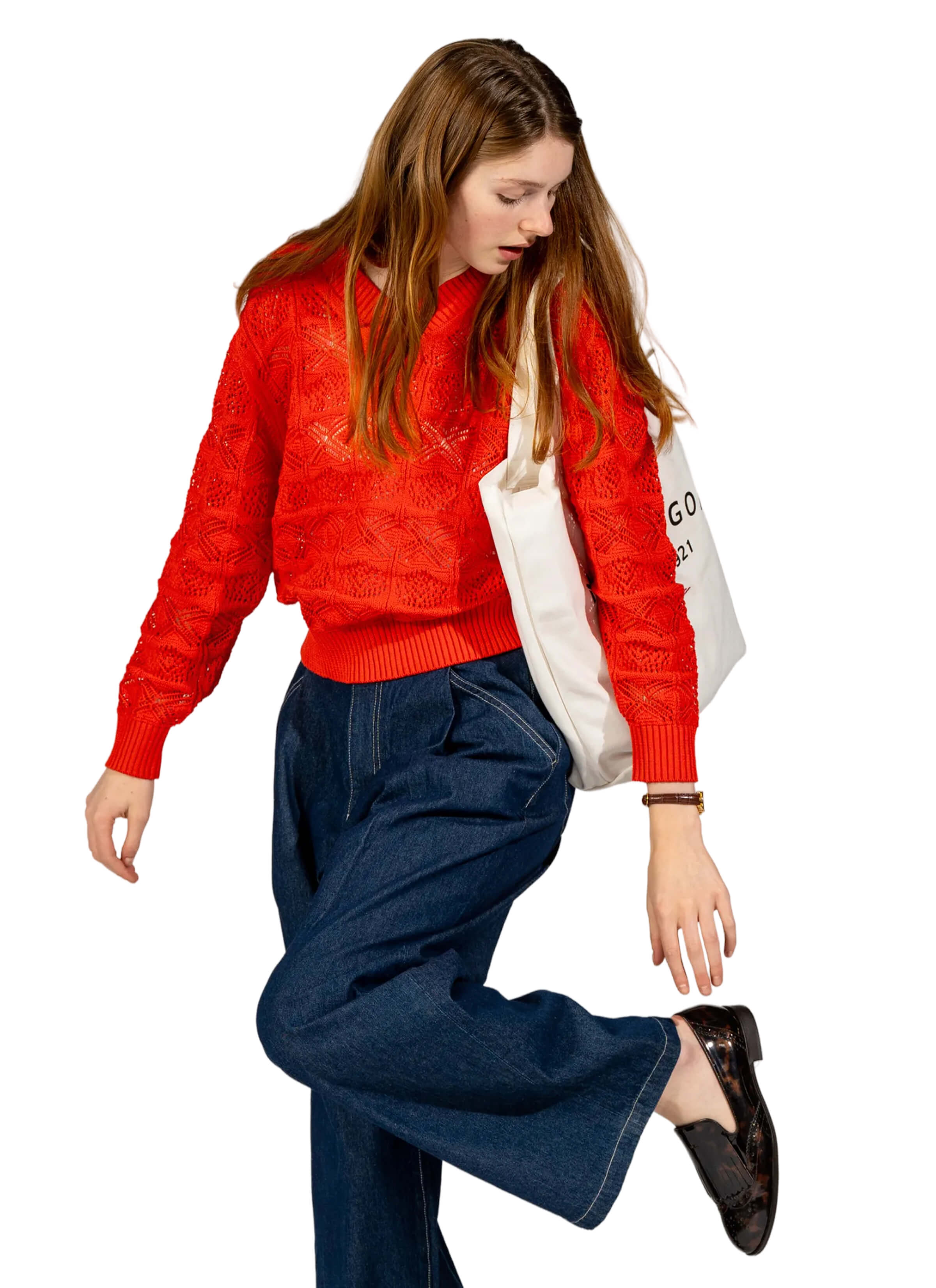 ビビッドなオレンジが目を惹く春ニット